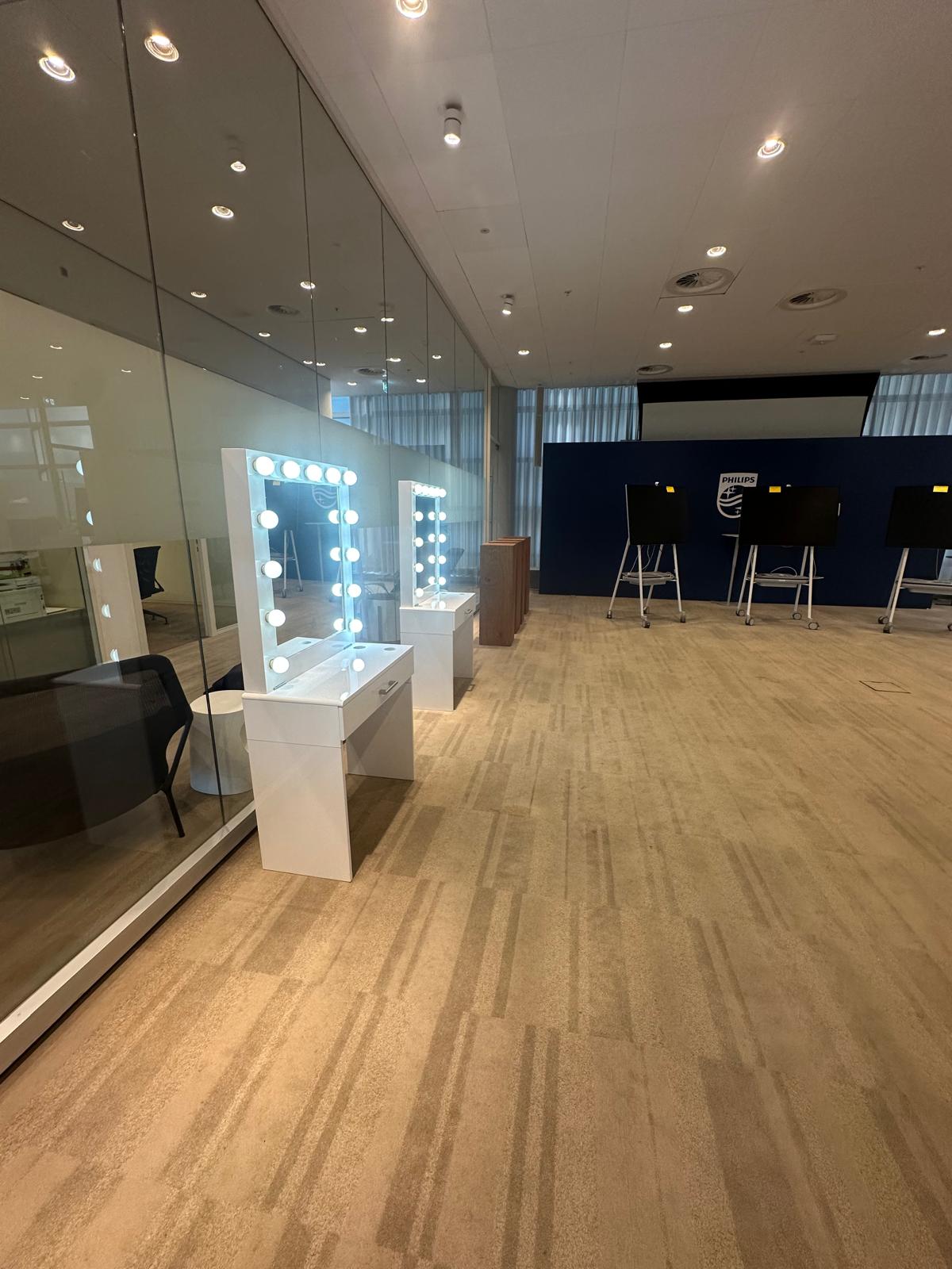 Of het nu gaat om het inrichten van een filmset, tv-productie, modeshow of theater: wij leveren professionele kaptafels op maat en zorgen voor de perfecte backstage beleving.